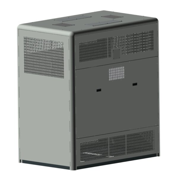 Costruzione | I Box protezione trasformatori serie "MODULA24" sono realizzati con lamiere pressopiegate con spessore 15/10 sia per la struttura che i pannelli, mentre il telaio di base è in lamiera 20/10 essi sono del tipo solidale con fissaggio direttamente su trasformatore | ||||||||